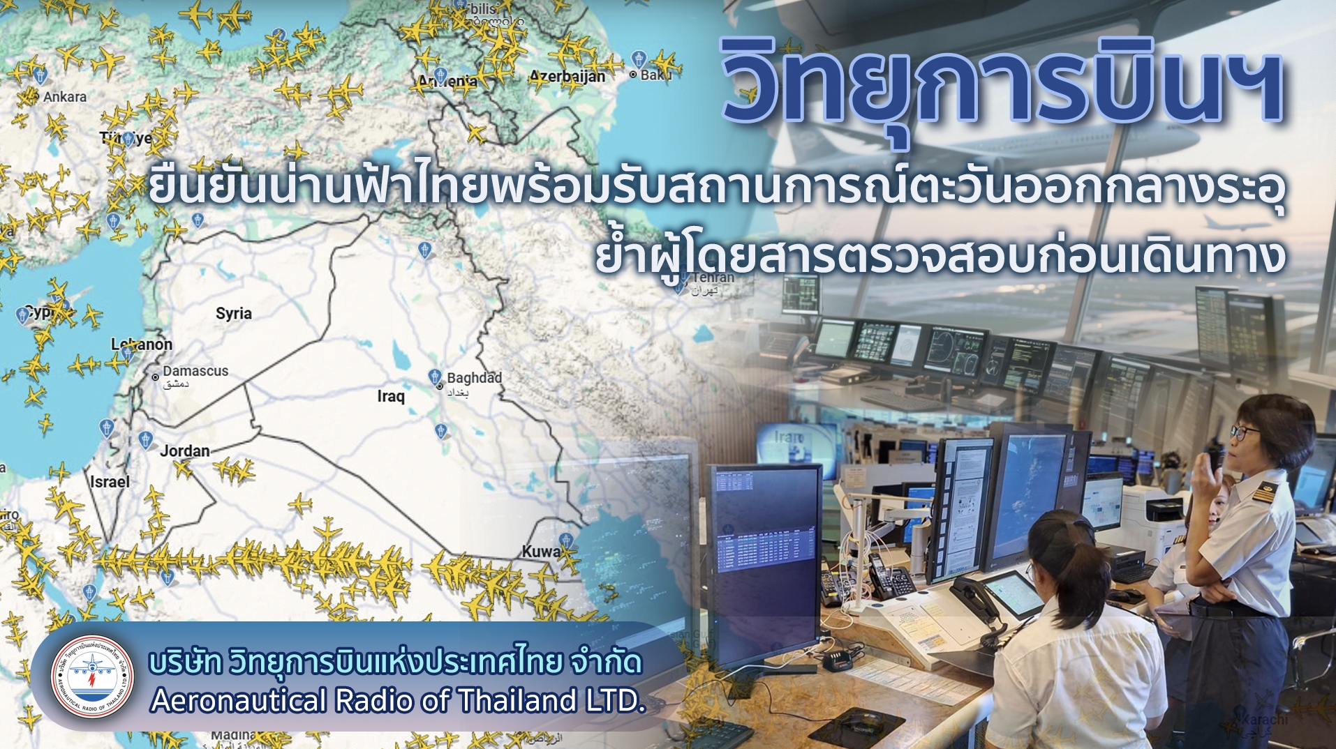 นายสุรชัย หนูพรหม รองกรรมการผู้อำนวยการใหญ่ รักษาการ กรรมการผู้อำนวยการใหญ่ บริษัท วิทยุการบินแห่งประเทศไทย จำกัด (บวท.) เปิดเผยว่า ตามที่เกิดสถานการณ์ความขัดแย้งในตะวันออกกลาง เกิดปฏิบัติการโจมตีทางอากาศและขีปนาวุธตอบโต้กันระหว่างอิสราเอลและอิหร่าน ส่งผลให้หลายประเทศในภูมิภาคตะวันออกกลางต้องปิดพื้นที่น่านฝ้า เช่น อิหร่าน อิรัก บาห์เรน กาตาร์ คูเวต ซึ่งสถานการณ์ดังกล่าว ส่งผลกระทบต่อเที่ยวบินผ่านน่านฟ้าภูมิภาคตะวันออกกลาง โดยสายการบินที่ได้รับผลกระทบได้ยกเลิกเที่ยวบินเข้าออกท่าอากาศยานในภูมิภาคดังกล่าว อย่างไรก็ตาม ภาพรวมการเดินอากาศของประเทศไทยยังคงดำเนินไปได้ เนื่องจากสายการบินได้มีการเฝ้าติดตามสถานการณ์อย่างใกล้ชิด และวางแผนเส้นทางบินล่วงหน้า เพื่อหลีกเลี่ยงพื้นที่เสี่ยง ซึ่งวิทยุการบินฯ ยังคงให้บริการสนับสนุนให้การปฏิบัติการบินเป็นไปอย่างราบรื่น