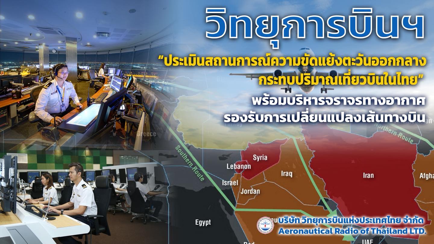 **วิทยุการบินฯ ประเมินสถานการณ์ความขัดแย้งตะวันออกกลาง กระทบปริมาณเที่ยวบินในไทย พร้อมบริหารจราจรทางอากาศรองรับการเปลี่ยนแปลงเส้นทางบิน
