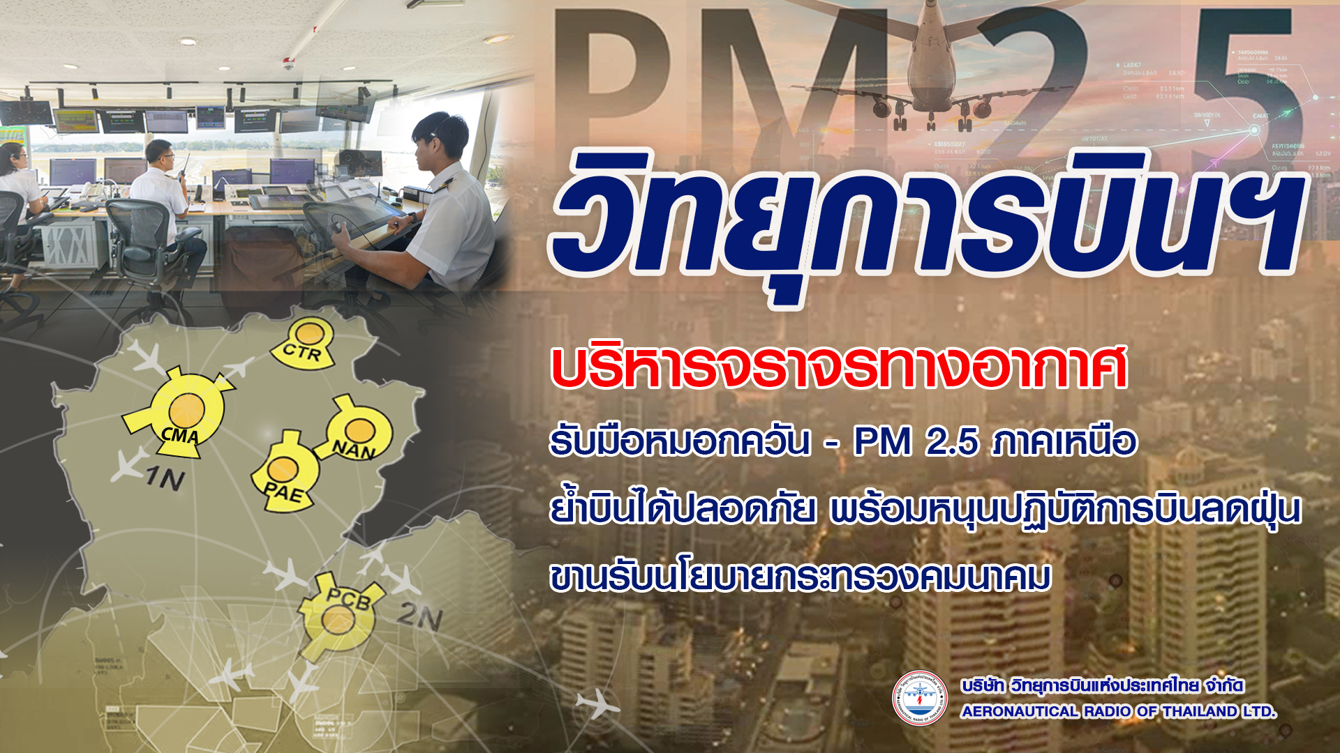 วิทยุการบินฯ บริหารจราจรทางอากาศรับมือ หมอกควัน–PM 2.5 ภาคเหนือ ย้ำบินได้ปลอดภัย พร้อมหนุนปฏิบัติการบินลดฝุ่น ขานรับนโยบายกระทรวงคมนาคม